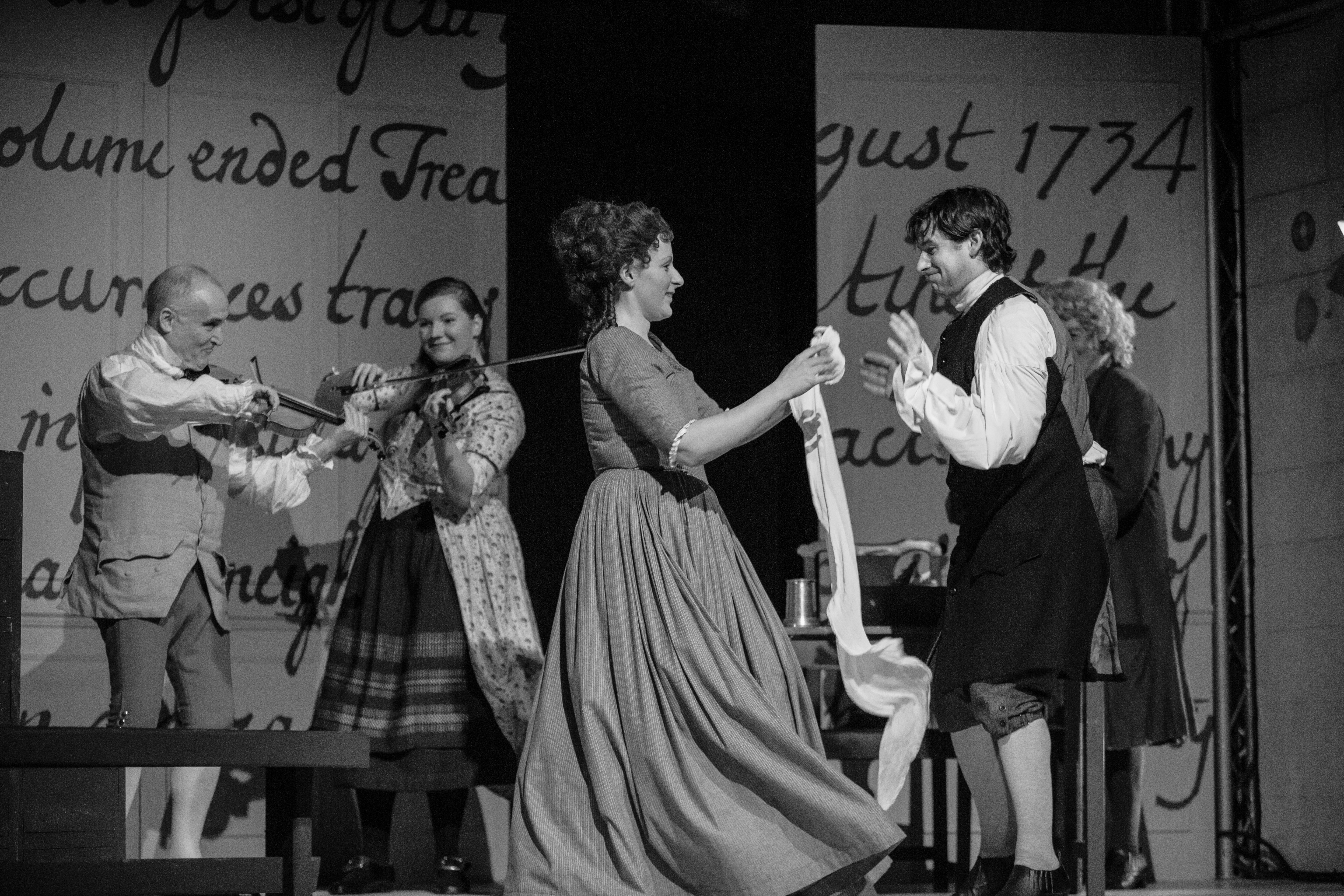 The versatile small cast seamlessly lead the audience through the highs and lows of William Bulkeley’s life, moving between characters and taking us from Bulkeley’s home at Y Brynddu to the courthouse in Biwmares and to Dublin, London and Italy. Readings from the original diaries, written in English, lead us through the performance, are interspersed with dramatic scenes and music from the period.